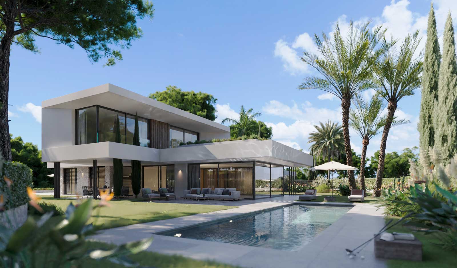 In a contemporary spirit, the idea is to create a house with clean lines on two levels, open to nature with large bay windows offering magnificent views of the Las Colinas golf course. The 442 m2 villa will be furnished and decorated to the highest standards, with 4 spacious bedrooms and 4 bathrooms, a vast living/dining room and a fully equipped kitchen.